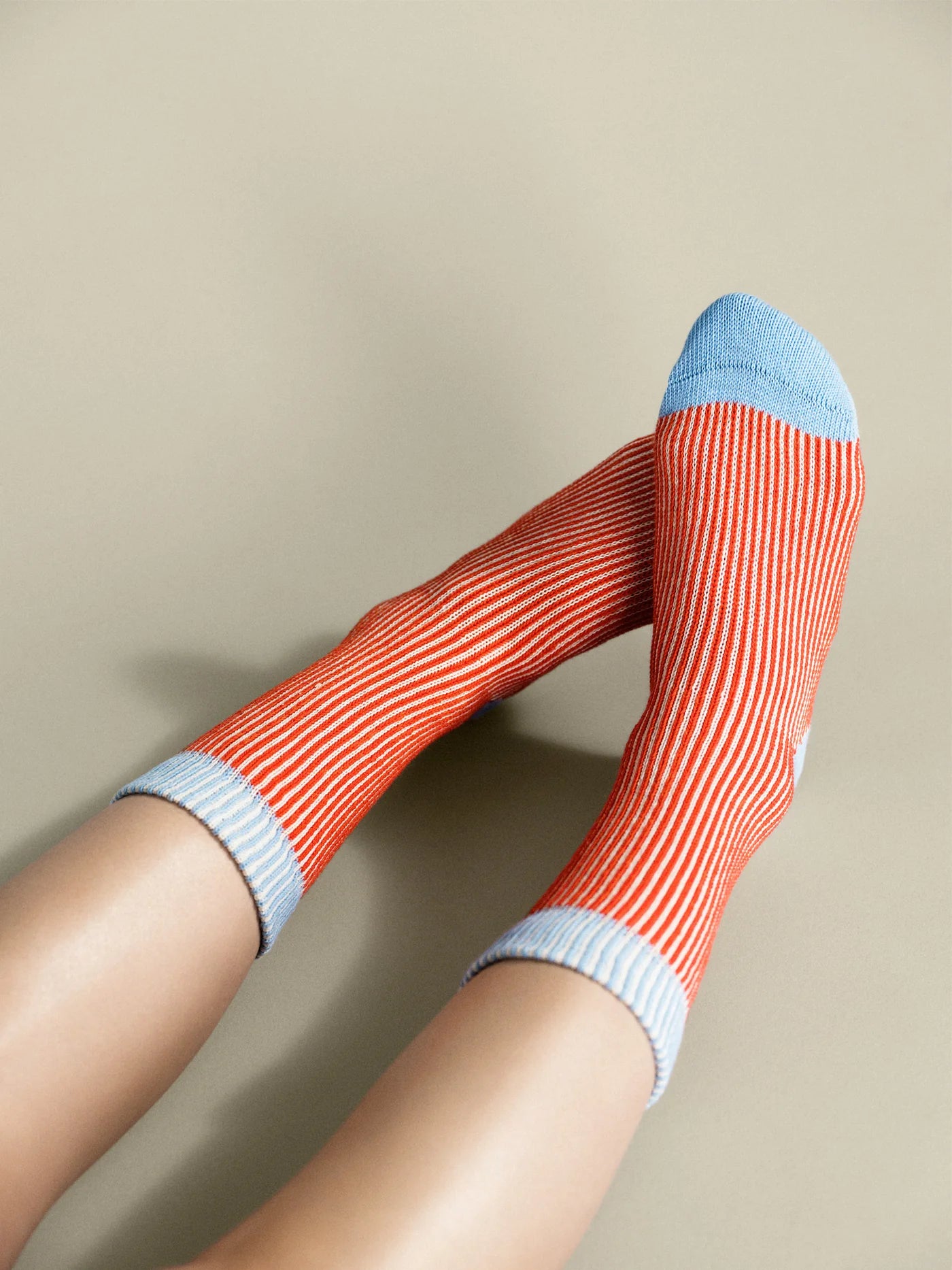 Channel some beach day vibes any time of the year in a pair of supersoft cotton-blend crews, in an updated crew length. Inspired by colorful striped umbrellas, this jacquard-knit pair has an extra smooth touch and no frays on the inside.