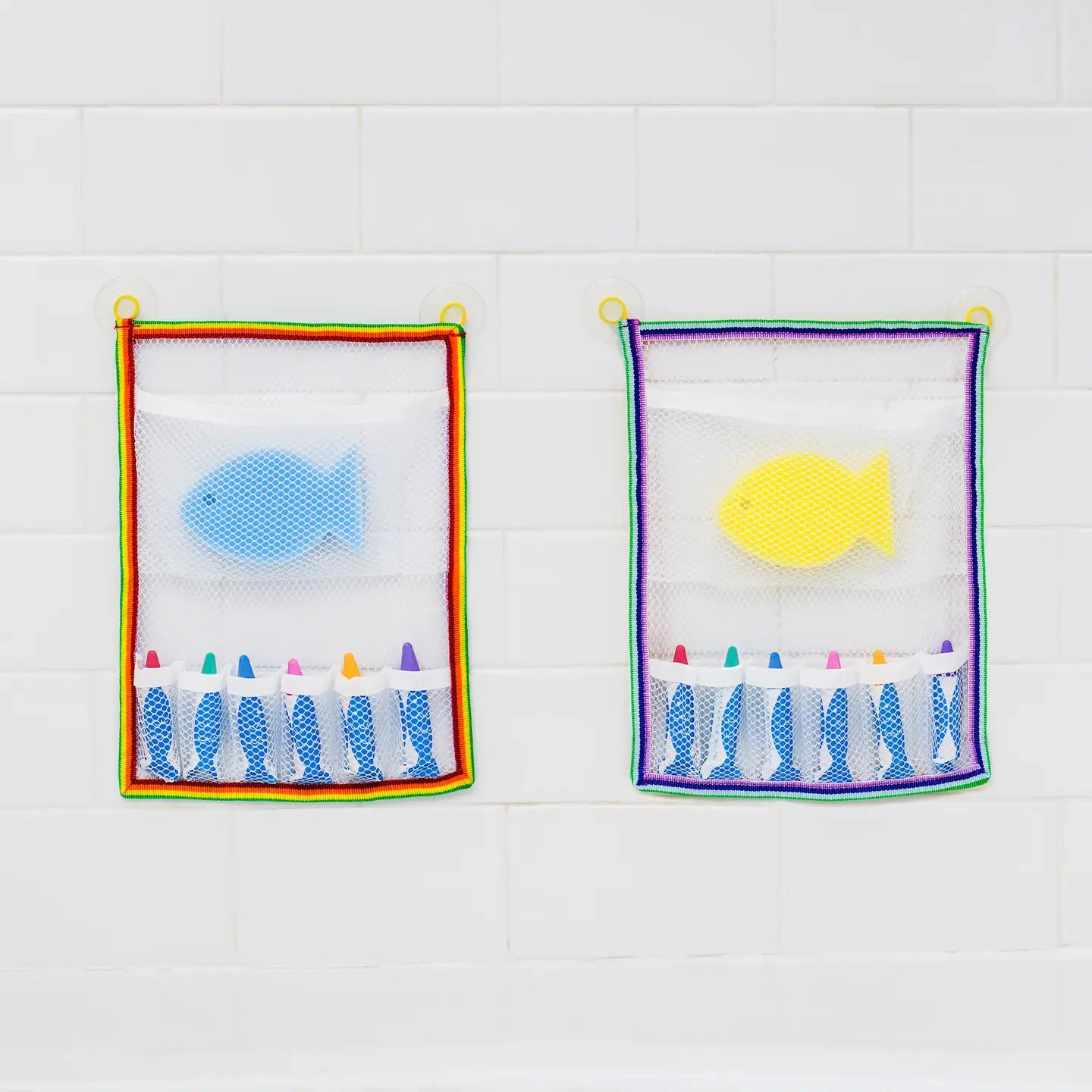 Make bath time fun with this activity set! A set of 6 Kitpas for bath (Red, Green, Blue, Pink, Yellow, and Purple), a blue sponge, and a waterproof case that adheres to the bathroom wall! Float in the water, draws on wet surfaces.