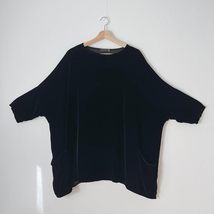 Cut Loose | Velvet Two Pocket Pullover in Black