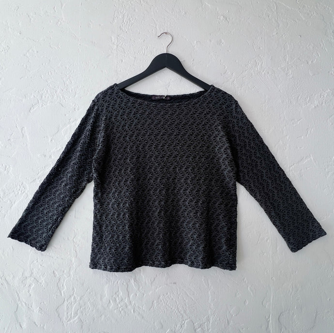 Cut Loose | Wavy Crochet Knit 3/4 Sleeve Boatneck Tee in Gull