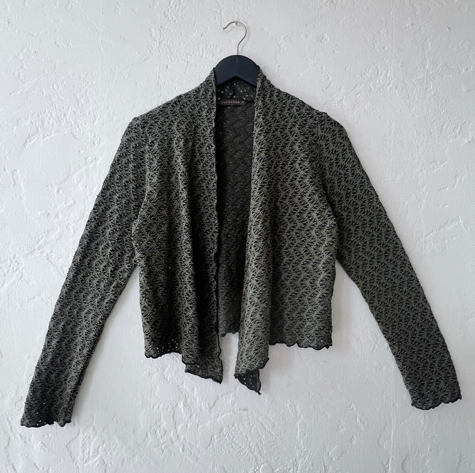 Cut Loose | Wavy Crochet Knit Cropped Cardigan in Kelp