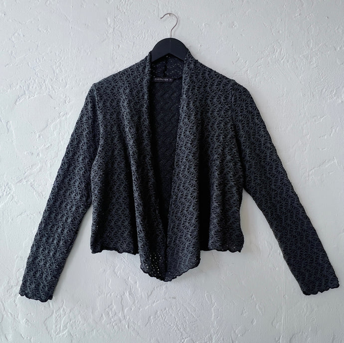 Cut Loose | Wavy Crochet Knit Cropped Cardigan in Gull