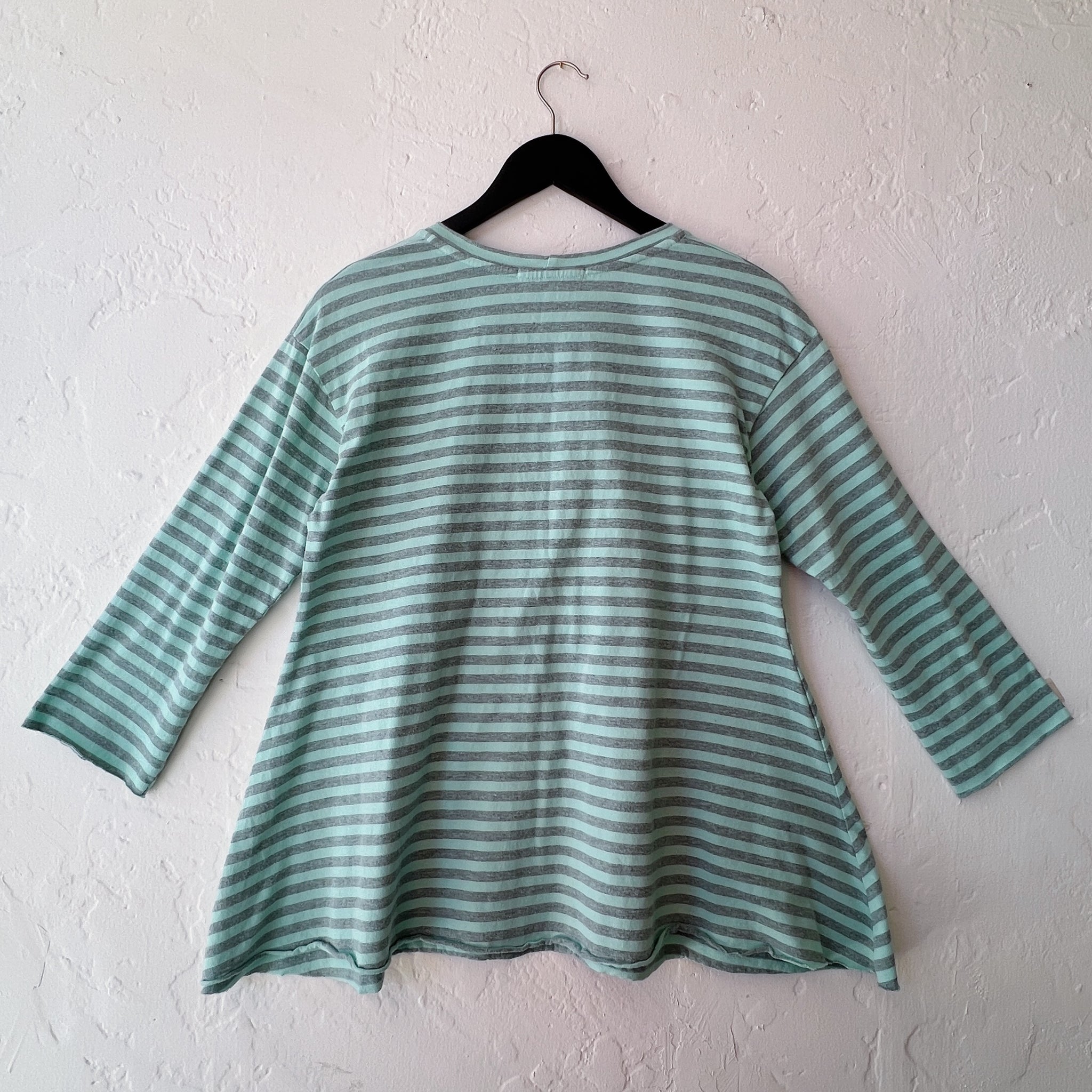 Cut Loose | 3/4 Sleeve Swing Top in Grey & Aqueduct Stripes