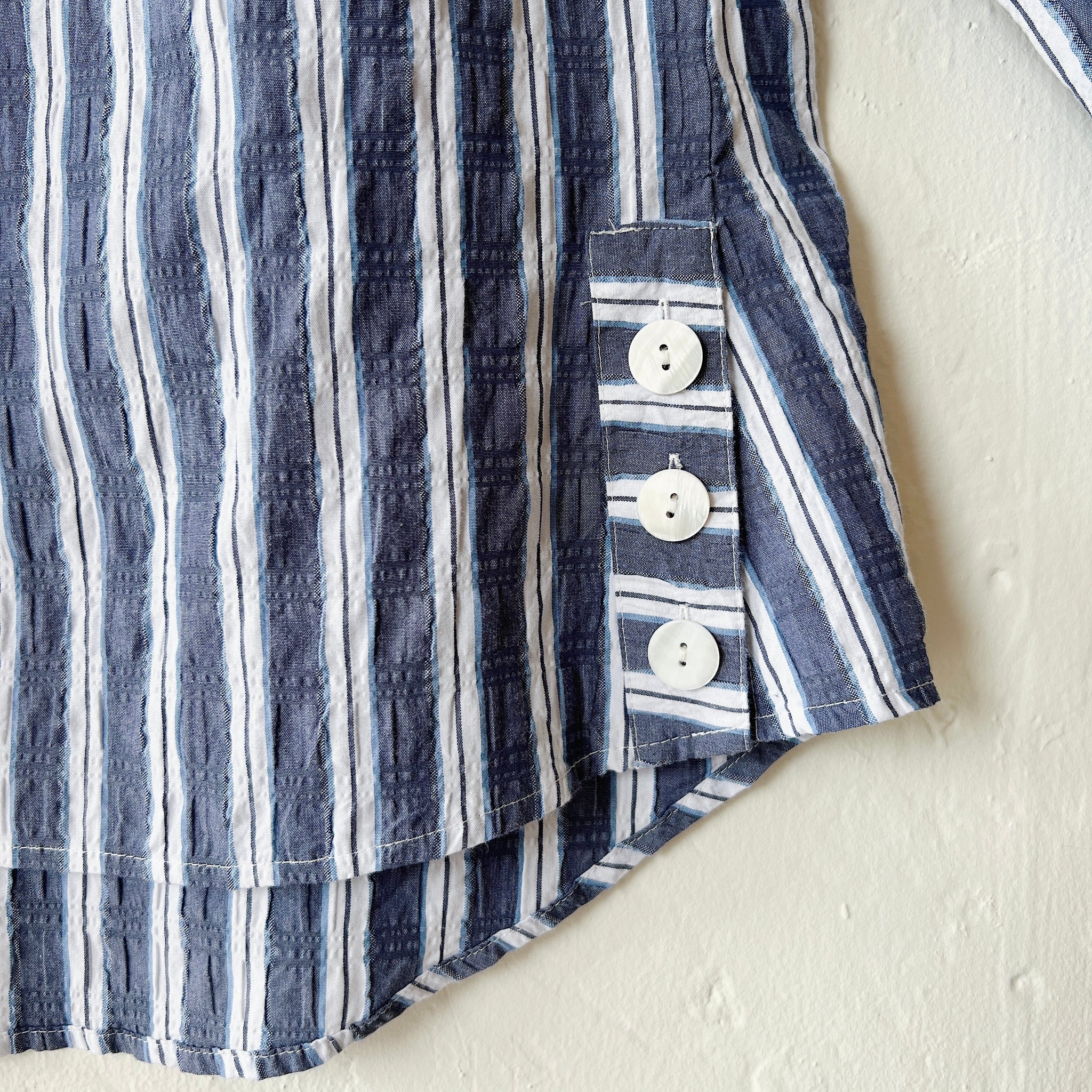 Palm Beach Stripe Ribbon Trim Tunic in Indigo