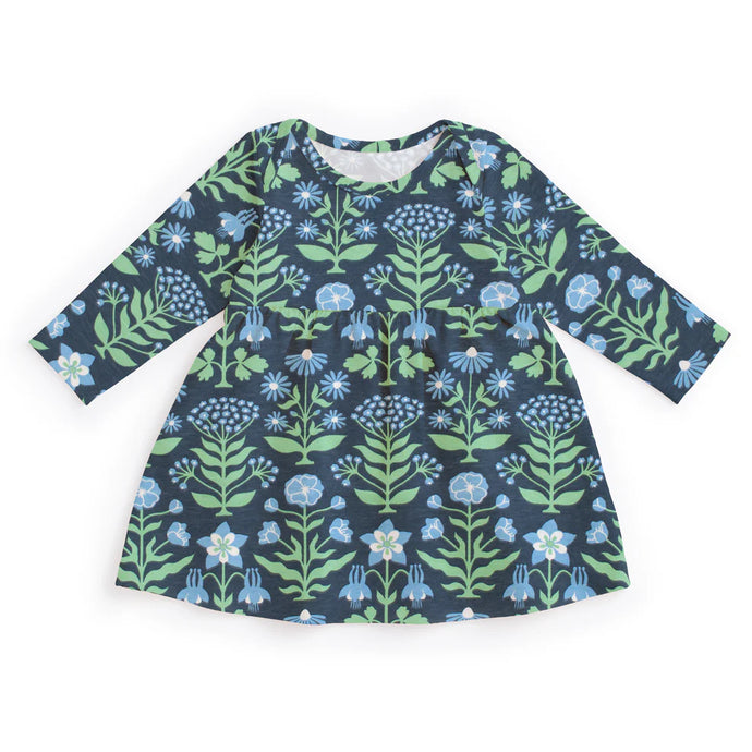 Winter Water Factory | Lausanne Baby Dress in Blue and Green Floral Blockprint