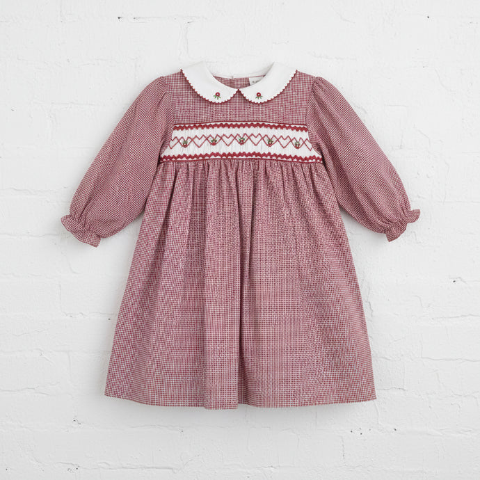 Girls' Dress with Heart Shaped Bishop Smocking in Red