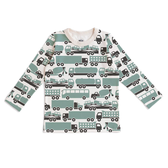 Winter Water Factory | Long Sleeve Tee in Surf Blue Big Rigs Print