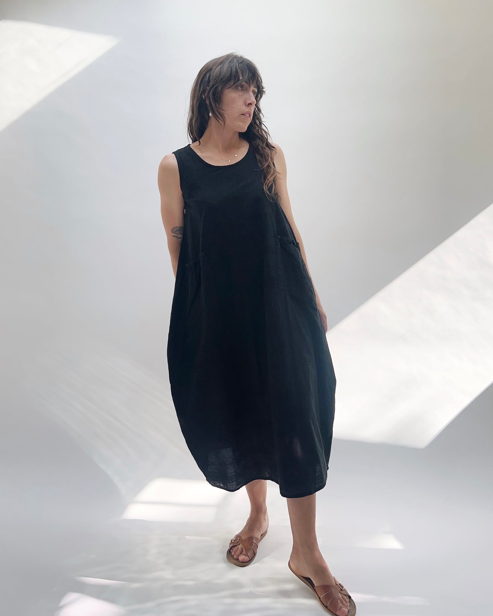 • Load image into Gallery viewer, Cut Loose | Textured Mini Stripe Pocket Dress in Black
