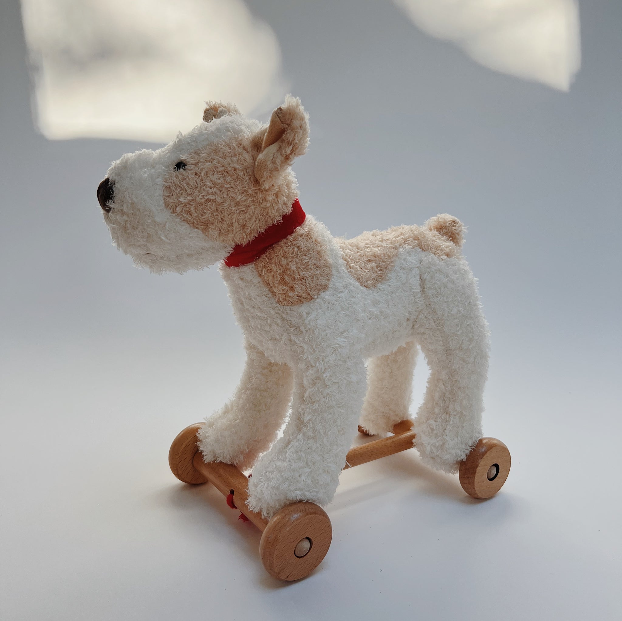 Here comes Eliot on his little wooden wheels! He is ready to follow his owner wherever he goes! A vintage look and a very soft fur to be loved and hugged.