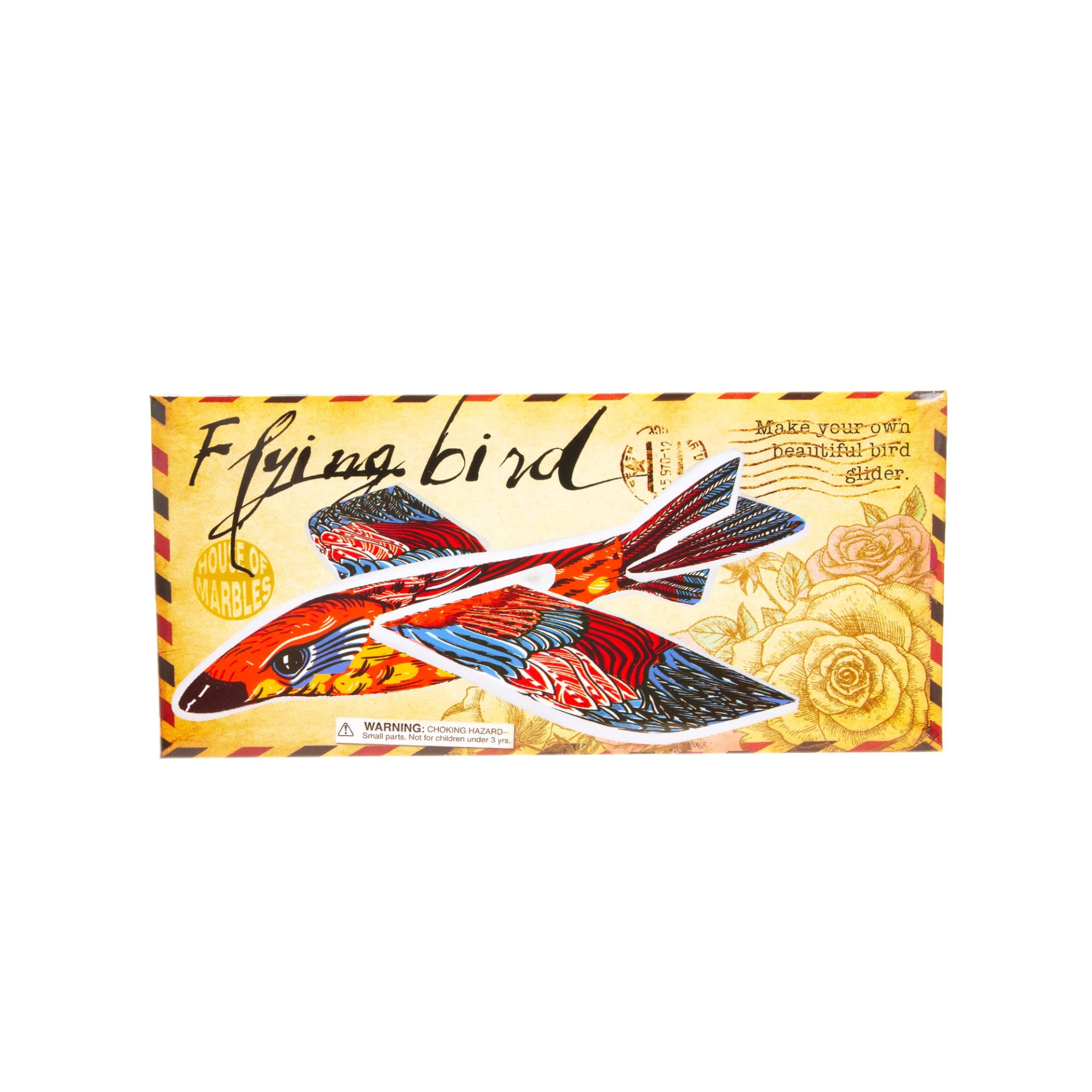 A pop out and put together bird shaped glider with beautiful 1970's style plumage stickers. You will receive one color randomly from the selection available when you purchase this item.