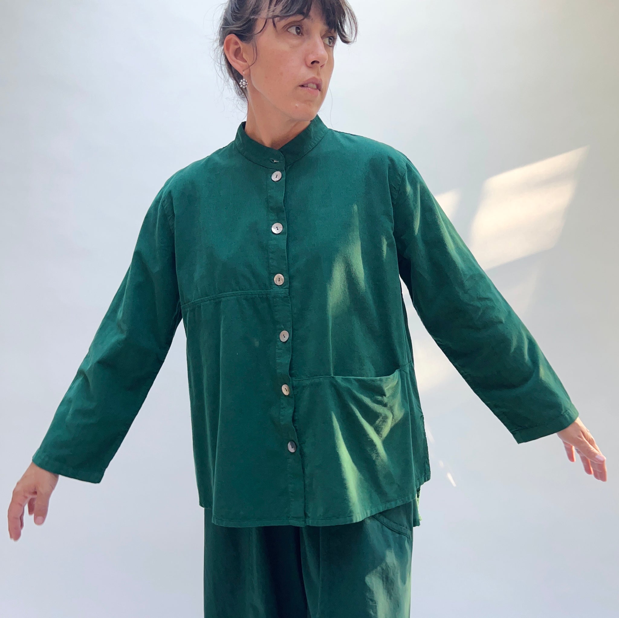 Eleven Stitch | Corduroy Drop Pocket Shirt in Blue Hunter