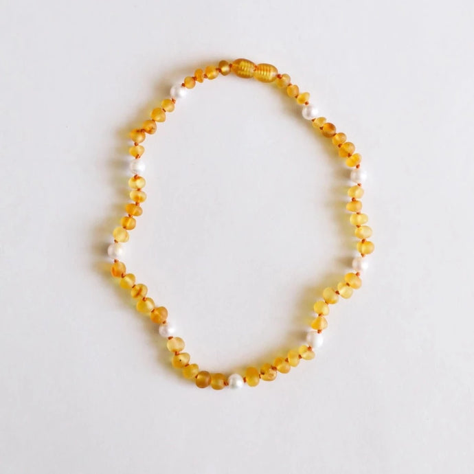 Raw Honey Amber + Pearl Halo Necklace