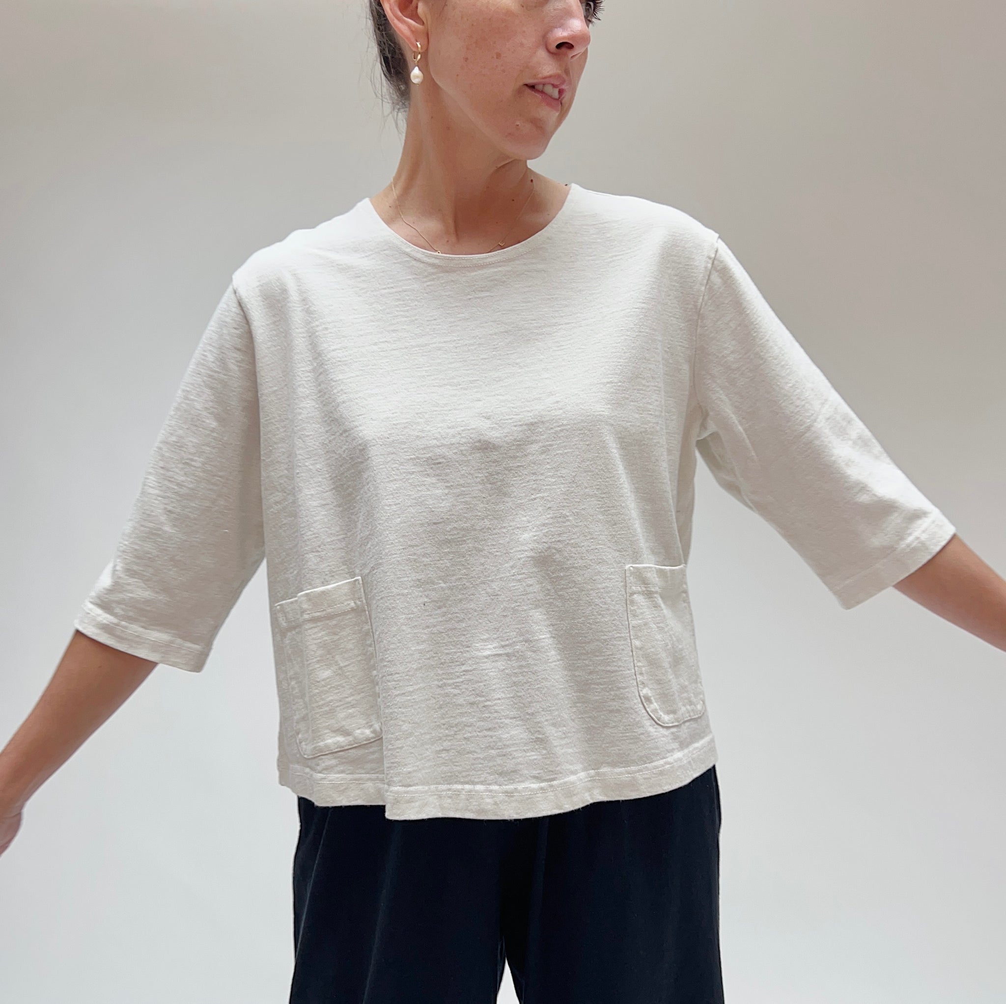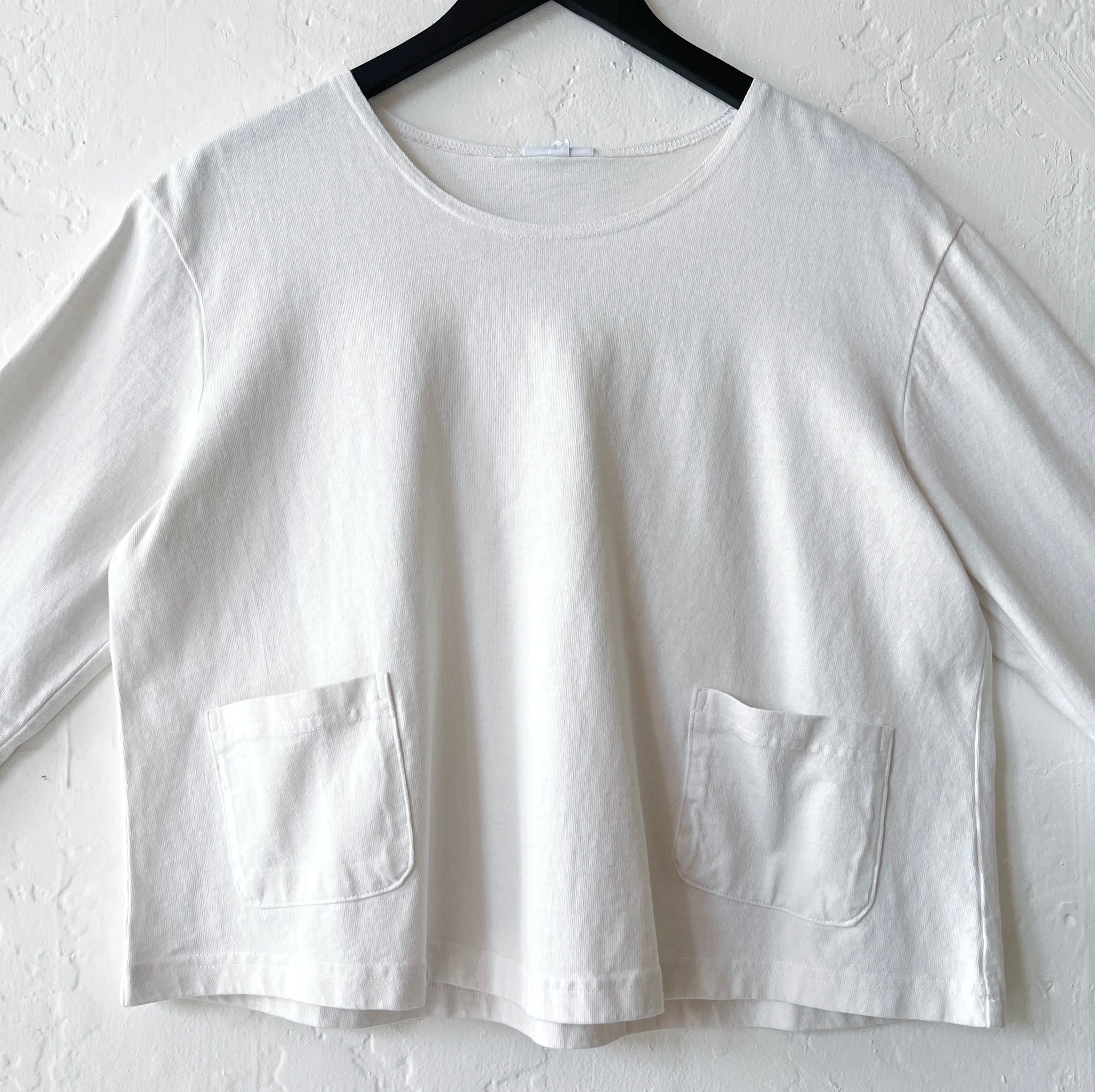 3/4 sleeve top with two front pockets in Pacific Cotton's signature long-lasting heavy weight cotton.
