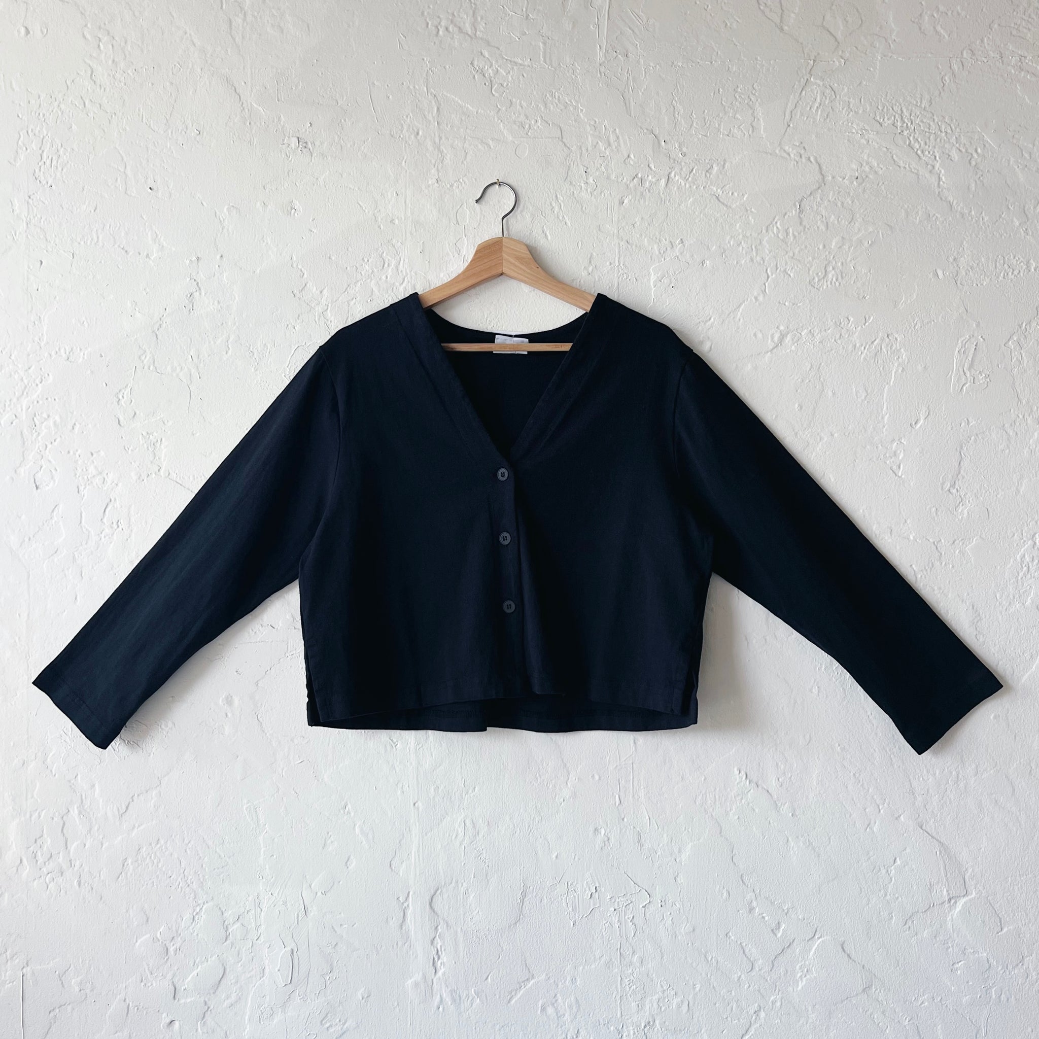 Long sleeved cardigan top with a v-neck button down front in Pacific Cotton's signature long-lasting heavy weight cotton.