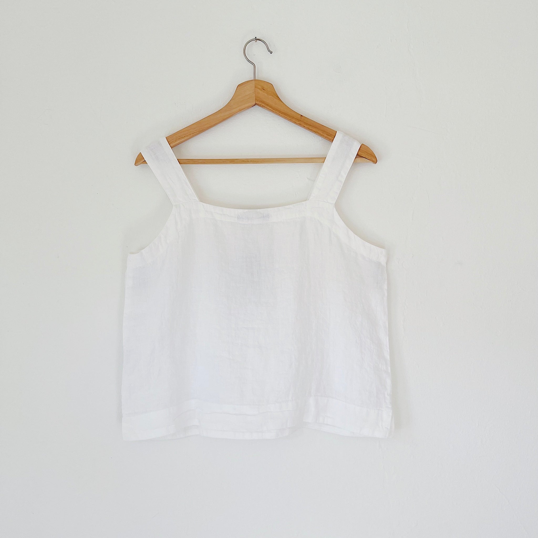 • Load image into Gallery viewer, Cut Loose | Square Neck Linen Tank in White