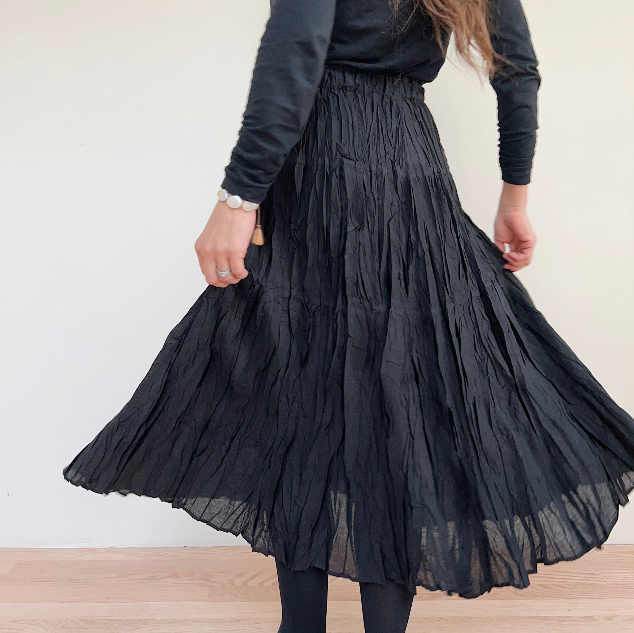 Understated and easy to wear, you'll feel light (and pretty) as a feather in this elastic-waisted pleated skirt.