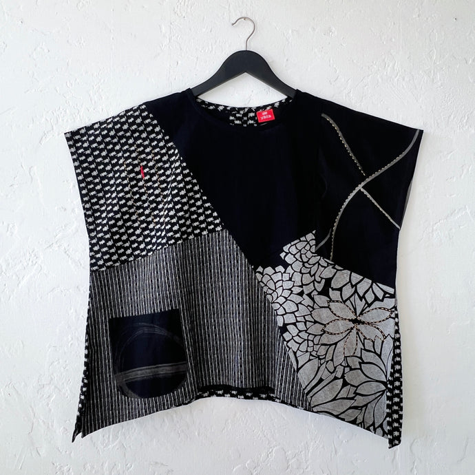 • Yaza | Circle Patchwork Jersey Top in Black