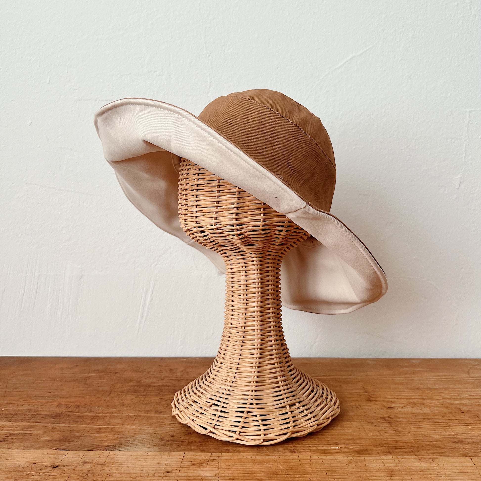 Cotton & Linen Wide Brim Hat in Reversible Beige