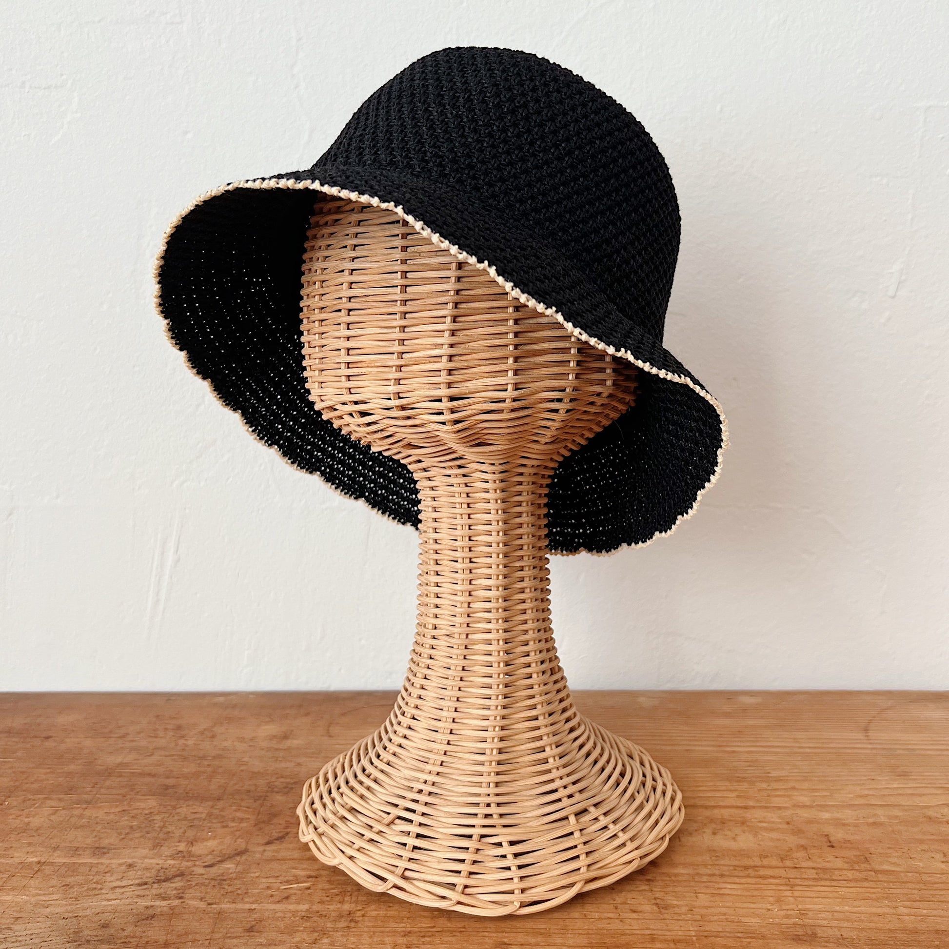 Knit Paper Bucket Hat in Black