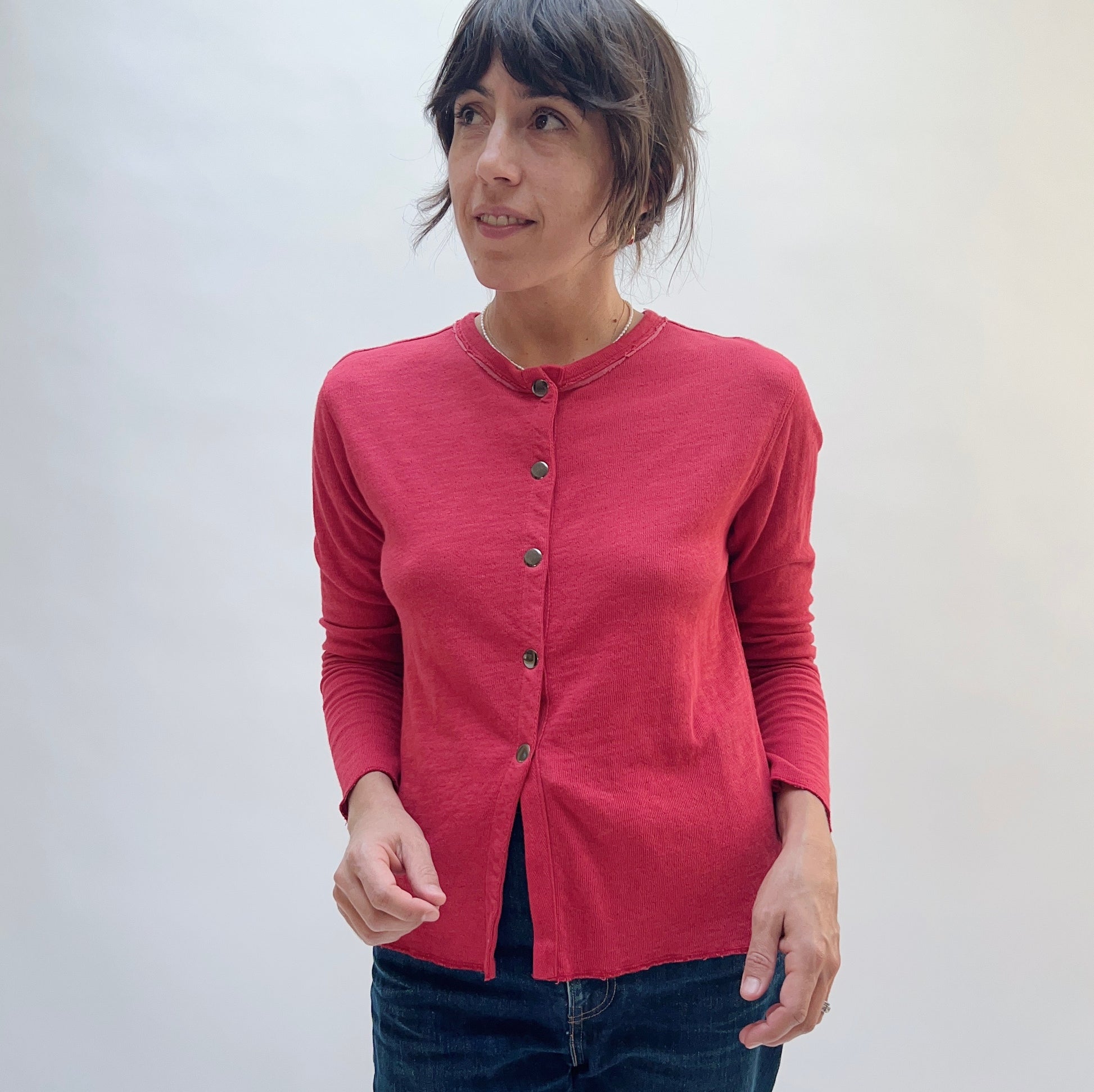 North Star Base | Snap Front Cardigan in Cinnabar