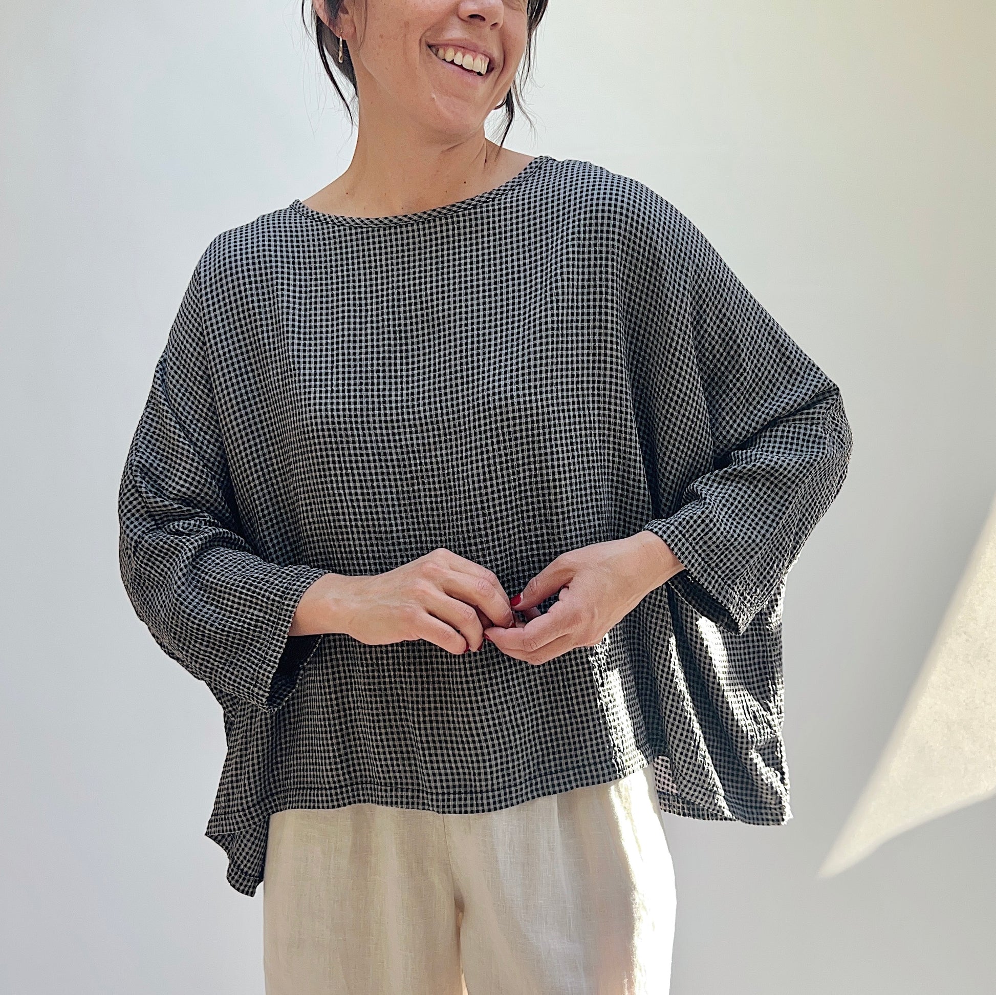 One Size Crop Top in Black Mini Crinkle Check